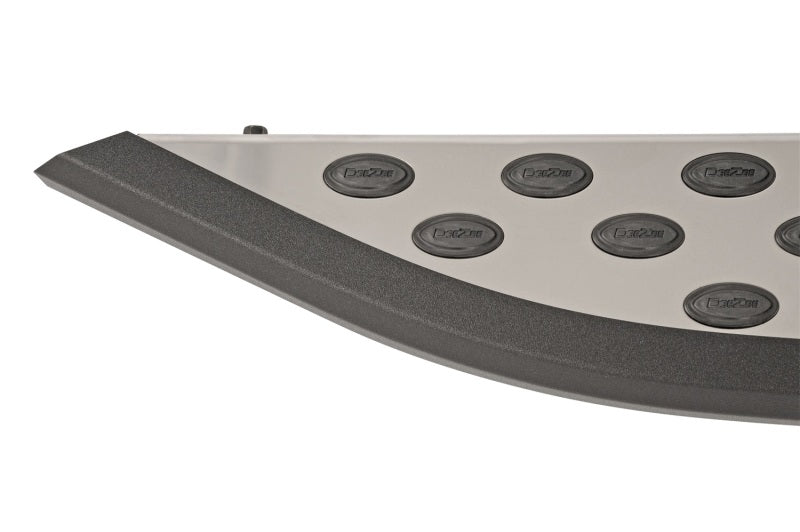 Dee Zee NXc Steps (board section)-The NXc step is designed for todays crossover utility vehicles (CUV). A universal board combined with custom fit brackets (sold separately) fit all listed applications. The lightweight aluminum powder coated is sealed with a stainless steel top plate for a brilliant shine. It features full-length protective accent trim that wraps the step. Slip resistant raised rubber grommets on step area ensure a secure footing. Required custom fit bracket kits sold separately. Stainless/Black - 5 in. x 71.5 in.