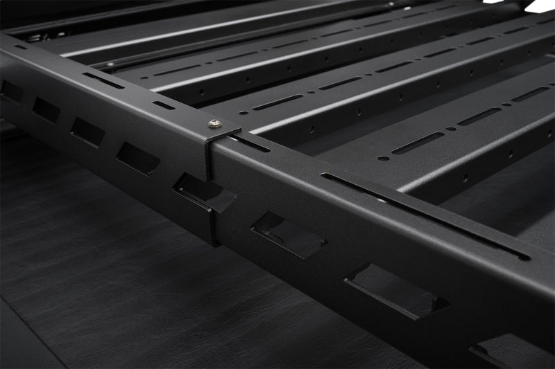 Unleash your pioneering spirit and advance your ability to explore with the N-FAB Universal Roof Rack. With a sleek, low-profile design, two available widths, and a length that adjusts from 24-inches to a full 41-inches, we've engineered the Universal Roof Rack to work with most OEM and aftermarket crossbars. Its spacious and sturdy frame puts form equal to function, with the capability to carry 180 lbs. of added cargo. And since there is more to adventure than just hauling gear, built-in anchor points make it easy to keep your stuff secure as you navigate virtually any terrain. Plus, integrated light multi-mount systems, front and rear, create the perfect platform for adding auxiliary lighting to illuminate the job site, the campsite, or any dark trail between. The Universal Roof Rack from N-FAB includes both versatility and capability as standard equipment, so you're perfectly equipped no matter where you roam.