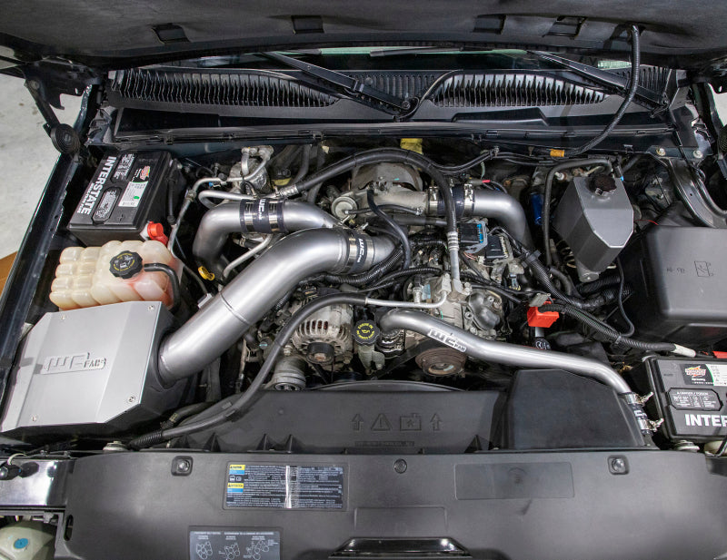 The Top Outlet Billet Thermostat Housing and Upper Coolant Pipe Kit for 2001-2005 LB7/LLY Duramax replaces the OEM upper radiator hose that normally crosses over the driver side valve cover as well as the coolant return pipe. By changing the coolant routing to an upwards and forward layout from the thermostat, this kit improves access to driver side fuel system components, adds room for larger aftermarket turbochargers, and updates engine bay appearance. Compatible with Single and Dual CP3 Pump setups. Finished in your choice of custom powder coat colors.
