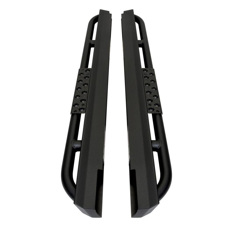 The all-new XTS Rock Sliders from Westin provide outstanding protection from rocks and other trail hazards, and feature a custom profile to match vehicle's contour for enhanced protection and great styling. Westin's XTS Rock Sliders are constructed from 12-gauge steel channel combined with a 1-3/4in. diameter .120in. thick wall round tube for superior durability. The XTS Rock Sliders feature bolt-on step plates with polyurea texture coated grip surfaces for slip resistance. These XTS Rock Sliders are built to last through the use of an electrostatic base coat for superior corrosion resistance in combination with a durable textured black powder coat finish. All XTS Rock Sliders come complete with all necessary hardware to provide a hassle-free installation, while a full 3-Year warranty provides peace of mind.